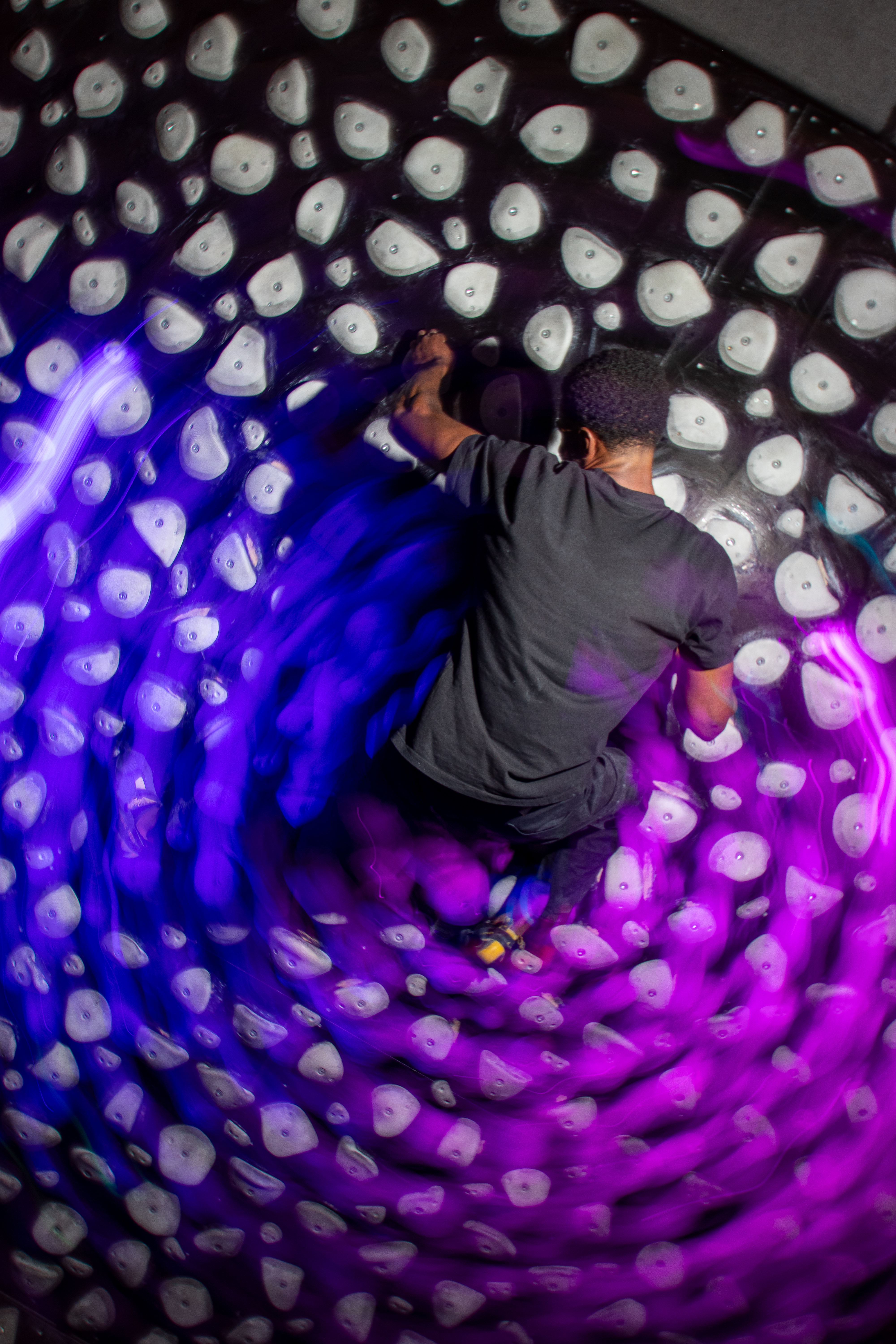 Direction artistique d'une compétition internationale d'escalade (Paris et Londres), soutenue par Arc’teryx. L'enjeu était de créer une identité visuelle commune pour cet événement unique, où les grimpeurs s'affrontaient sur des murs inclinables identiques (Kilter Board) pour garantir une parfaite équité. J'ai conçu un univers inspiré du rétrogaming des années 70-80, mêlant effets d'écrans cathodiques et références à Space Invaders. Ce concept fort, décliné sur un grand nombre de supports de communication dont une vidéo en stop-motion utilisant les prises lumineuses du mur, a permis de lier visuellement les deux étapes.